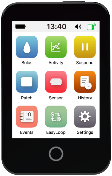 Alternatively use the intuitive touchscreen Personal Diabetes Manager (PDM) handset.