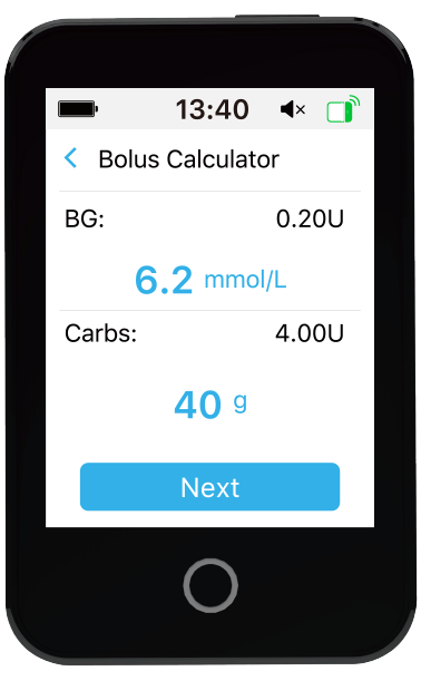 - Flexible Bolus delivery using the inbuilt Bolus calculator